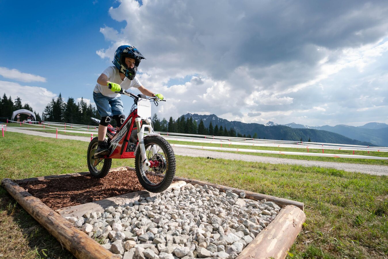 Nach einer Einweisung von einem unserer E-Trial Trainer geht es - angepasst an Alter & Können - auch schon los. Die umweltfreundlichen Oset-Bikes sind stufenlos verstellbar und können auch von den Kleinsten schon ausprobiert werden: Bikes gibt es bereits ab 3 Jahren. Voraussetzung ist, dass die Kids sicher Fahrrad oder Laufrad fahren können. Aber auch bereits erfahrene E-Trial Stars kommen im E-Trial Park Planai auf ihre Kosten: je nach Skills könnt Ihr zwischen den Übungsparcours und aus einer großen Auswahl an natürlichen und gebauten Obstacles wählen - ganz im Sinne des Trialsports, wo Style und Geschicklichkeit im Fokus stehen.