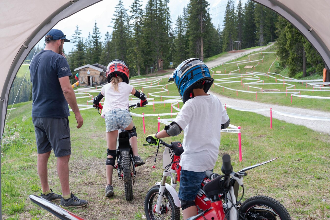 Bikes sind für Kinder und Junggebliebene von 3-99 Jahren verfügbar. Einweisung und Schutzbekleidung sind in der Station in der Weitmoosalm erhältlich. Festes Schuhwerk unbedingt erforderlich.